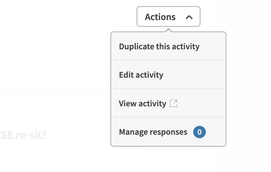 • Find the activity you wish to manage and use the 'actions' drop down on the right to choose an option.